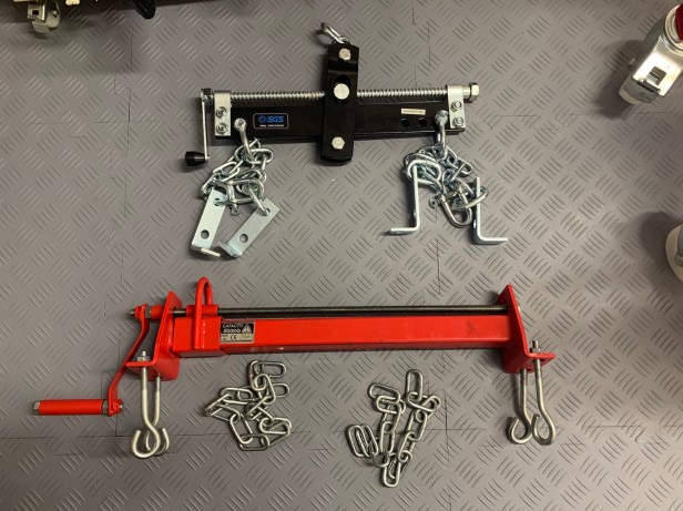 I use an engine load leveller when installing engines into a Caterham, to be able to adjust the angle of the engine during the install. There seem to be two main types on the market here in the UK: I have been using my Clarke strong-arm leveller (https://www.clarkeinternational.com/shop/product/details/cll500-load-leveller) for a few years now, but I decided to try the other style for this build, and I purchased an SGS leveller (https://www.sgs-engineering.com/sll680-load-leveller). Functionally, I would say there is very little difference between them, but I preferred the SGS because it didn’t flake red paint all over my engine.