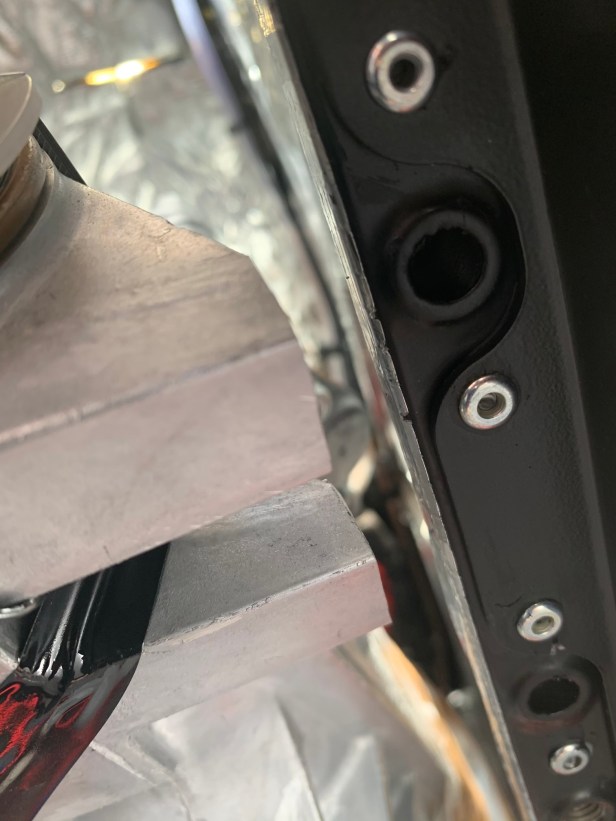 Remember, the engine rubber mount cap head bolt is imperial not metric, so use a 3/8” hex drive. Getting these engine/gearbox rubber mounting bolts located can be tricky, and often loosening the engine mount is helpful to getting the bolts started. Once you have all the bolts in place, it’s time to torque them all up. Unlike the old 5-speed gearbox and the 6-speed gearbox – there is no adjustment built into the gearbox mount.