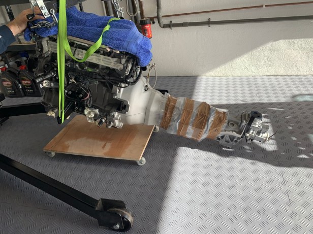 This part of the process can take a fair bit of time. I prefer to take my time and minimise any damage potential, therefore after each movement I check what’s going on in all the areas where the engine or gearbox are getting close to the chassis.