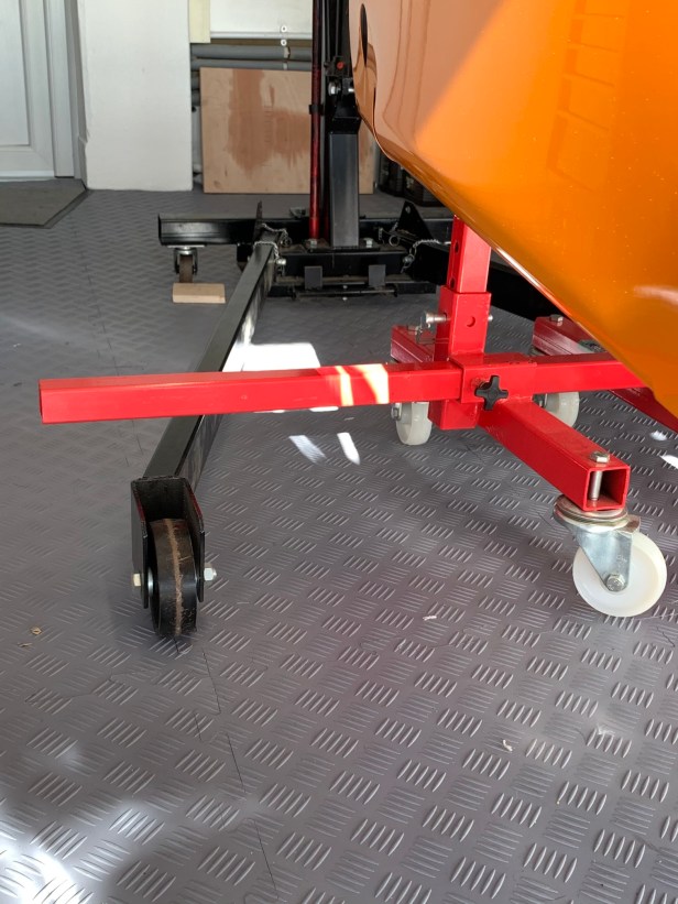 If you are using the hoist and axle stand combination for the first time, check that your hoist has enough reach to get your engine into the chassis and clears your axle stands before you attach your engine. Given this isn’t my first Duratec install using this hoist and wheeled axle stands, I skipped this part, but I did have this in mind even when I setup the axle stands before delivery. If you look back on that post you will be able to see the front stands are assembled differently to the rear to make them narrower. I suppose it would be wise to check that you have the height above the car for the hoist as well.