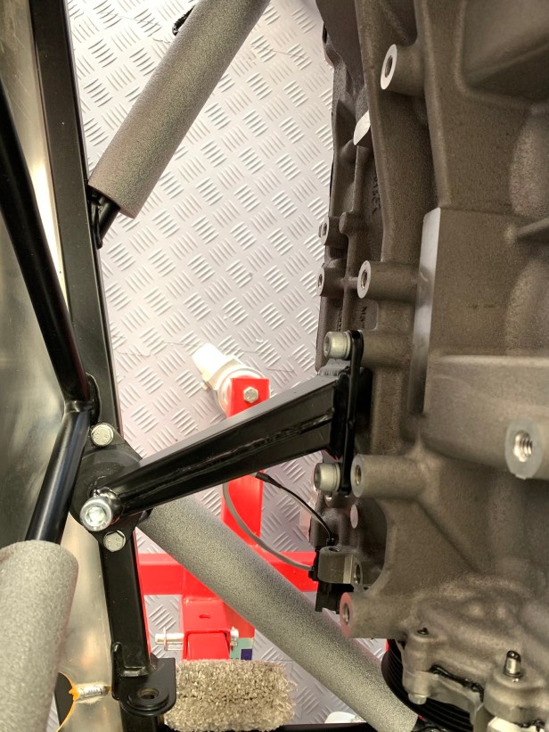 With the Mazda 5-speed gearbox you must not let the main body of the gearbox get lower than the chassis transmission tunnel. There isn’t the space (even without any twist) to raise the gearbox back into the chassis.