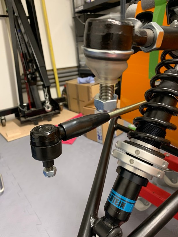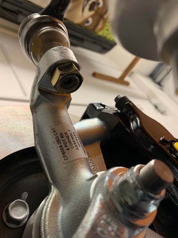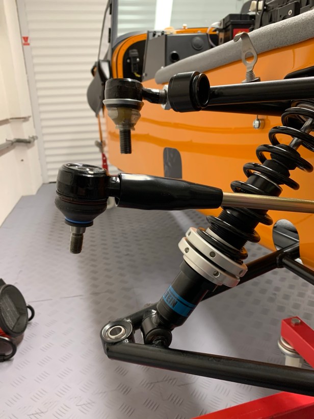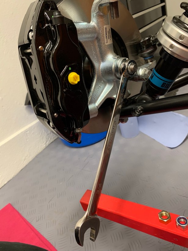 Now it’s just a case of tightening all the fixings. The upper ball join is difficult to access, so a wobbly extension bar is or similar needed. The track rod end ball joint may need pressure from the top to lock the taper, but hand pressure is sufficient.