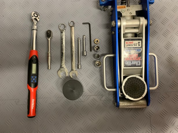 I also used the trolley jack (as per Chris’s recommendation) to lift the bottom wishbone before doing any of this, as the suspension sags under its own weight otherwise. Works well.