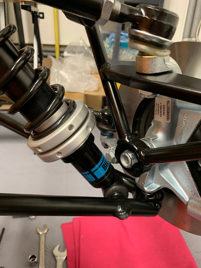 Once I retrieved the top hat from the freezer, I inserted it into the lower wishbone spherical bearing, before the upright was lowered into the lower wishbone spherical bearing. Be careful not to push the top hat out of the bearing. Next, I fitted and tightened the 1/2” UNF nut to the lower wishbone / upright, while the top hat was still cold, to pull it into its final position. Hold the upright at all times so it doesn’t fall.