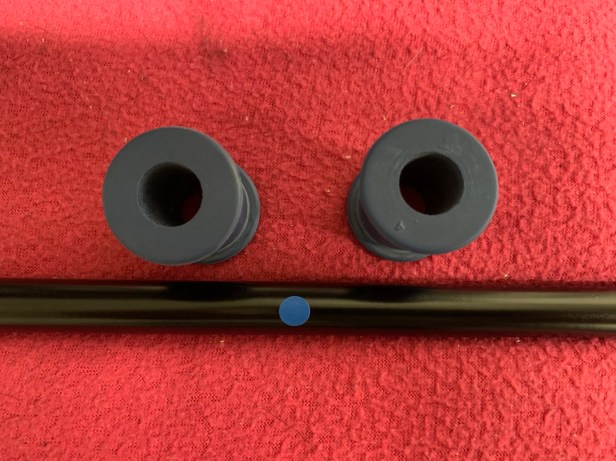 I started by checking I have the correct Anti Roll Bar (ARB) bushes for the ARB that’s being installed. The colour of the spot on the ARB should match the bush colour. The front ARB bushes are packed together with the ARB balls, rubber boots and mounts. Be careful not to get confused with the orange bushes used for the rear ARB (fitted to R models).