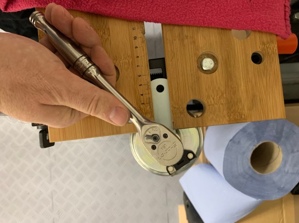 Then I noticed a problem: there wasn’t enough thread through the nut. So for now I removed the washer. I might investigate a longer bolt.