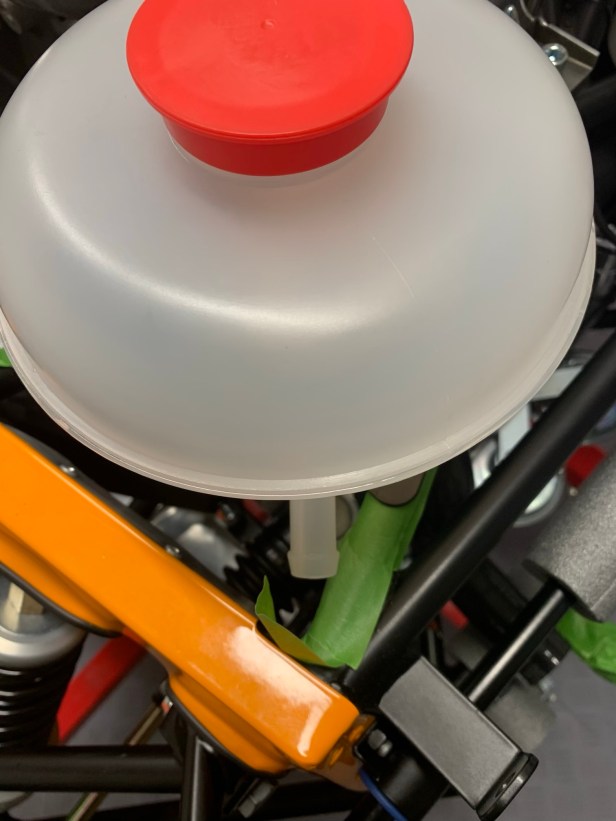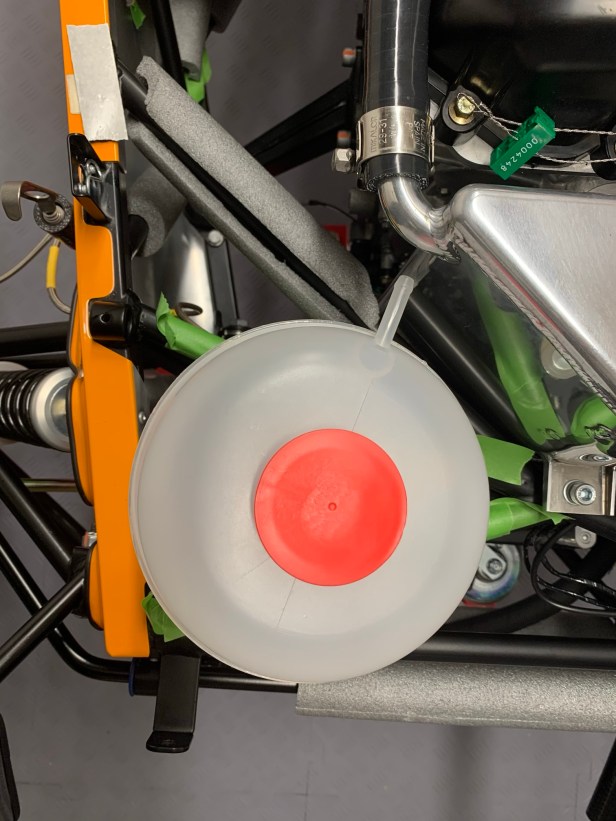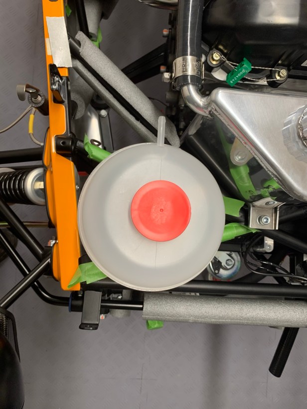 This was one of the tasks I wasn’t looking forward to. I have to say that I don’t like drilling into chassis tubes, it’s not one of my strongest skills. I have also had an experience, where the expansion tank cap on a 420R S3 touched the nosecone (because the lower Dzus fasteners hadn’t been secured properly). The result was a dent in the nosecone and paint. Therefore I am aware that clearance on a S3 is very tight.