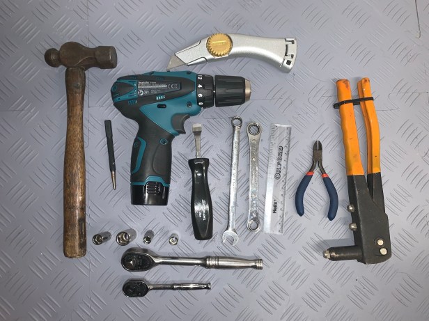 As I said drilling, isn’t my strongest skill. I managed to get three holes where I wanted, but one was slightly off, thankfully the rivets permitted enough play to mask this mistake. I took the opportunity to paint the holes I drilled with POR15 chassis paint and fill the chassis tubes with ACF50 anti rust oil, before riveting the expansion tank bracket in place. For convenience decided to use the hand pop rivet tool instead of setting up the air powered tool. Unfortunately this always seems to damage the black rivet heads, so a little more chassis paint was used to touch them up (still wet when the photo was taken).