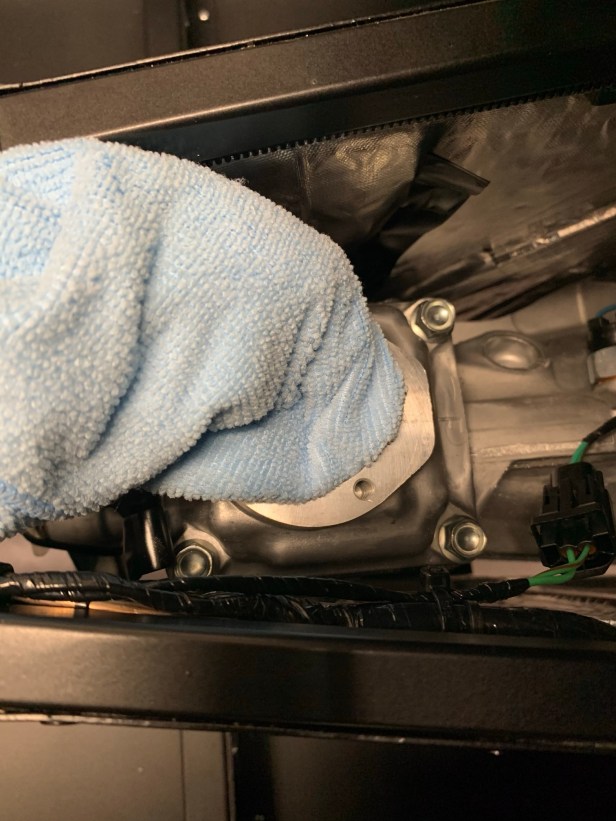 Now onto the gear lever. For some strange reason, I appear to have two sets of fixings for the gear lever. I decided to try them in the gearbox, but as a precaution used a rag to prevent a dropped screw from falling into the open gearbox. I decided to choose the screws which looked better in my opinion (less OEM), either set would have worked, so my decision was purely based on looks.