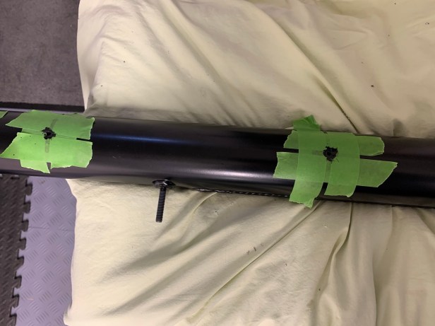 The manual (v1.2 and v2.0) calls for the holes on the top of the de Dion tube to be enlarged to 1/8″. Unfortunately, I don’t own a 1/8″ drill, so I tried a 3mm first. This did not provide enough clearance for the pop rivet, so I enlarged them again 3.5mm. I know this a little over the specified 1/8″, but the pop rivet should be able to fill the gap.
