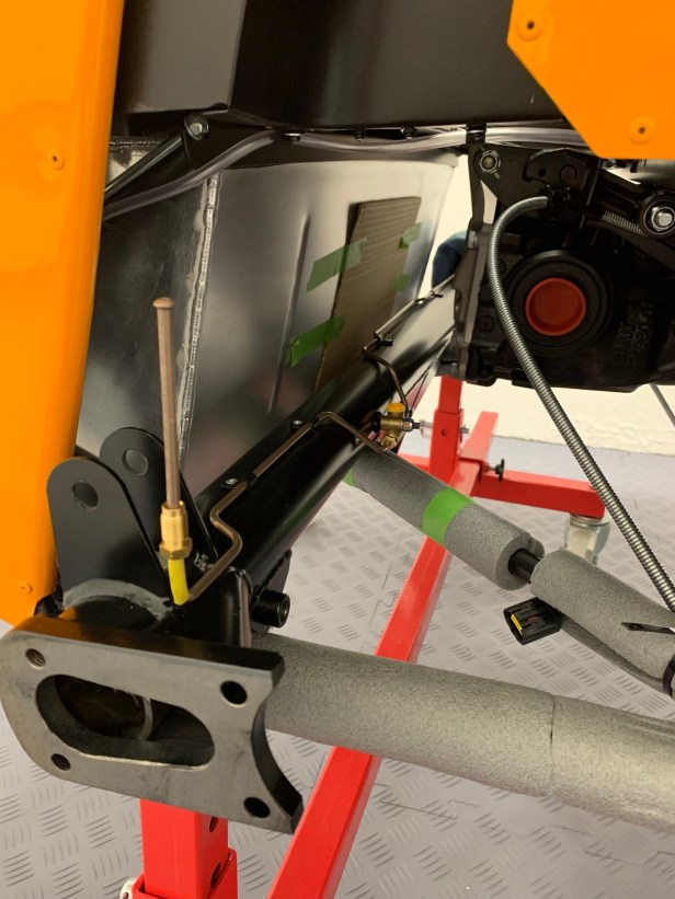 Once cut, the fuel hose simply slipped over the rear brake hose, and a few tie wraps completed the process. This fuel hose protection of the brake hose is an IVA requirement.