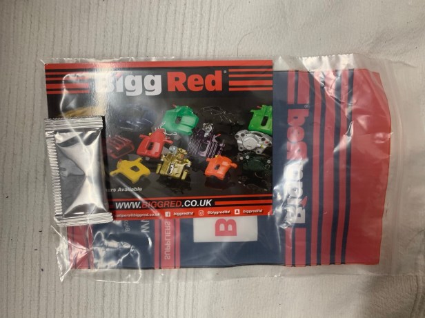 The rear brake calipers are no longer supplied fitted with slide pins. I know I was going to have to fit them, which is very simple, but also know they should be greased. I am sure I have the correct grease somewhere, but internet searches only uncovered much debate on the subject, therefore I choose to order purpose design caliper pin grease from BiggRed (http://www.biggred.co.uk). BiggRed is a caliper reconditioning specialist, but supplies caliper components. I didn’t know how much I would need, so ordered two sachets, in reality even being generous I only needed one.