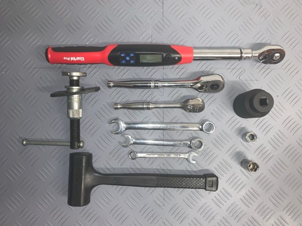 Then the shock: the right-hand-side nut is no longer 41mm, but 42mm, a socket I don’t own. You can see the hub nuts in their original Ford packaging in my photos, so this is not a Caterham design change, but a Ford part design change (without part number change). Looking closely at the Ford labels you can see the 42mm nut label looks newer, so maybe at some stage both nuts will be 42mm. Please check this before you purchase a socket for this job.