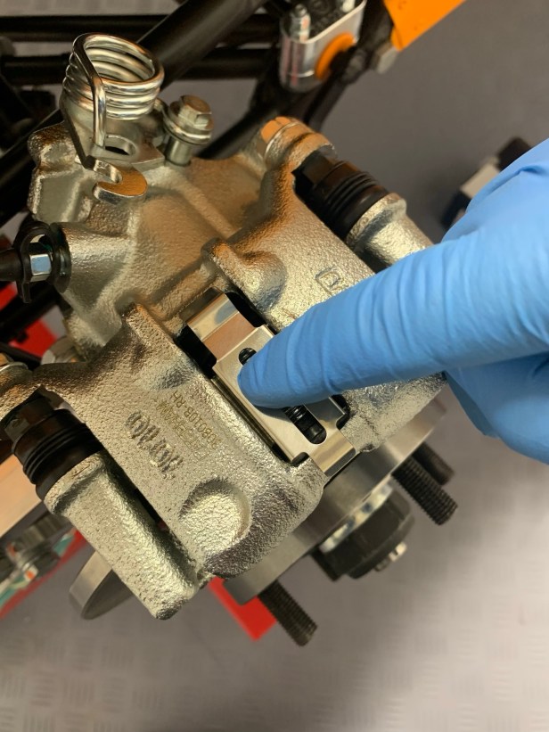 Now check the pads aren’t going to rattle, so test for any vertical movement that shouldn’t be there, and check the back pad is pushing on the anti rattle shim.