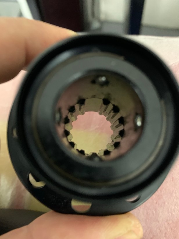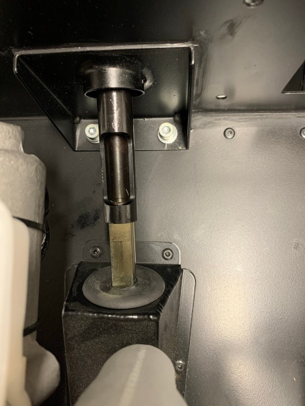 Next I started the install of the upper steering column. It’s tricky to get the upper column through the lower bush plastic insert, especially since I didn’t install the top bush. As you can see my plastic insert was pushed out with my first try.