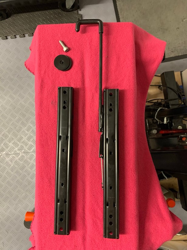I started the process by bending the runner release handle down, because I have lowered floors fitted and the hole in the lowered floor strengthening bracket prevents the runner from releasing. To test the bend was enough, I fitted the runner to the chassis floor and checked I could release the runner in any position.