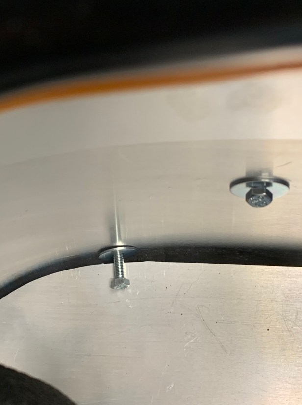 Finally I removed each of the front five bolts and I applied copper slip, because the side skin rivnuts are well known to rust over time and then spin when an attempt to remove them is made. Therefore I am doing everything I can to prevent this problem now.