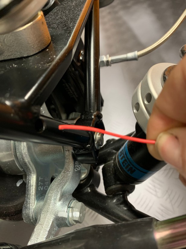 I secured the repeater wire to the wishbone with three tie wraps and one tie wrap on the ball joint with the upright to avoid the wire from contacting the spring. Make sure the steering can go from lock to lock before tightening the tie wraps.