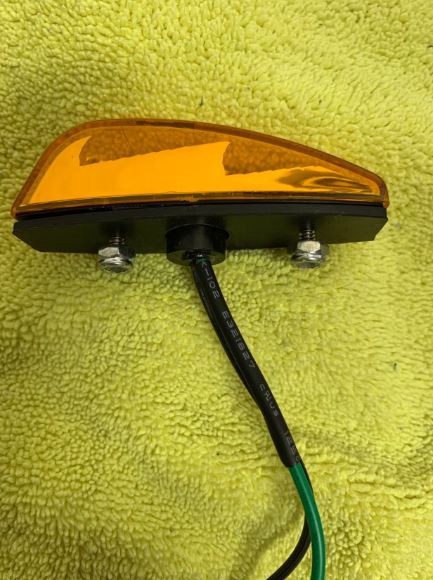 I prefer to use a pop rivet for the earth connection over a self tapper. The pop rivet is blunter (although not by much) and therefore in my mind less likely to damage the green wire in the wing stay. A quick check that the earth is good with the multimeter is prudent, because the connection is only made to the chassis using the braided brake lines. A tie wrap was added for completeness. Note, the nylocs holding the repeater have white inserts, so the nut is imperial.