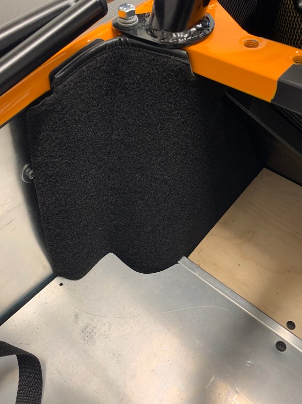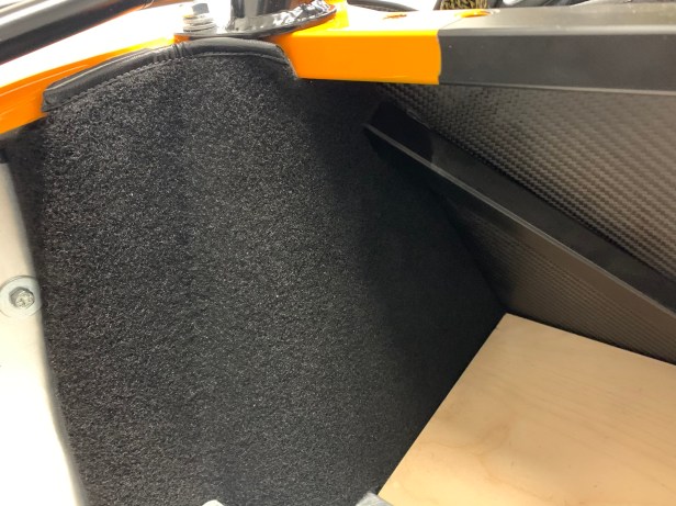 When I inspected the kit supplied carpets, I was surprised to find only a boot floor carpet, which wasn’t what I was expecting. My 360R came with a full boot carpet, and I had assumed my new kit would have the same. Now, this is my fault for not confirming what was meant by “Full Carpet” on the order sheet, an option I didn’t select. What I actually wanted was the standard carpet and some of the boot carpet pieces, and the “Full Carpet” option would have been a waste. At the time of writing, Caterham only provide carpet kits, and purchasing a whole kit would also mean I receive unwanted pieces of carpet. I therefore contacted the manufacturer Oxted Trimming (https://www.oxtedtrimming.co.uk), who provided me with the individual carpet pieces I wanted.