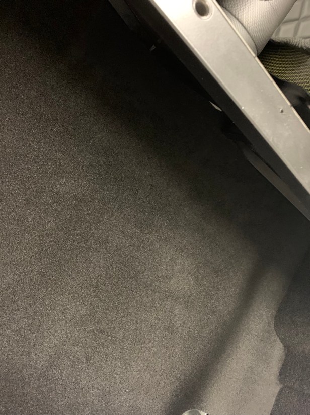 I didn’t need to trim the back boot carpet panel, just spray and glue. The boot floor carpet didn’t need any trimming either, but I decided to only glue it to the wooden section of the boot floor, to make removal easier in the future.