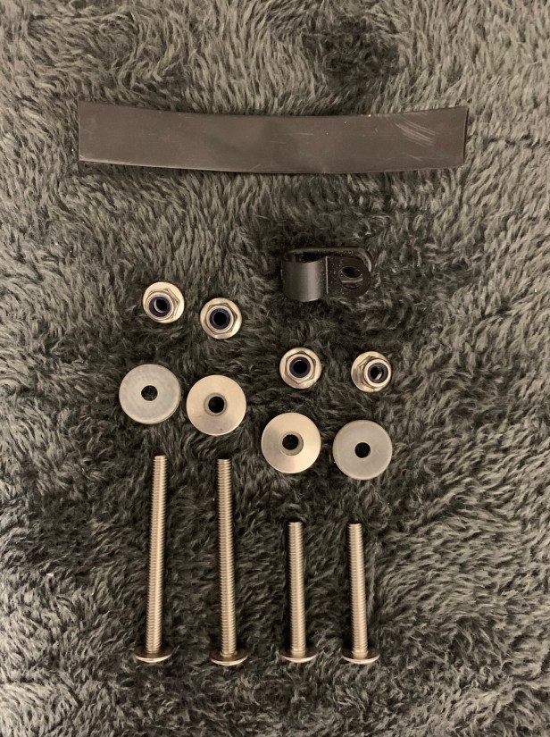 The issue I have is with the fixings. The kit-supplied fixings are self-tapping screws which make a lovely crunching sound as they bite into the fibreglass and crack the gel-coat. So I tried to find an alternative, and problem is the surface the screw is mounting to the service at an angle. I came up with the solution to use rubber-backed washers (M5), with M4 flare screws and flare nyloc nuts. I chose M4 flare screws, because they cleared the factory pre-drilled hole in the rear wing, meaning if I ever wanted to use the kit fixings I still could.