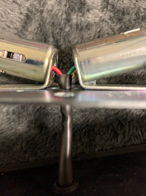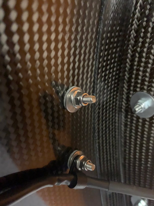 The electrical connection to the chassis loom was hiding between the tank and the side skin. Once found and connected, I could fit the grommet to the side skin. The wiring needs to be supported according to the new manual (v1.2 and v2.0); a P-clip works fine with my fixings. I was very happy with the new fixings, you can see how the rubber backed washers are compensating for the mounting angle.