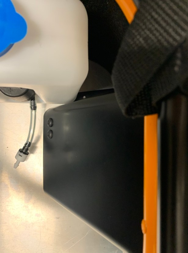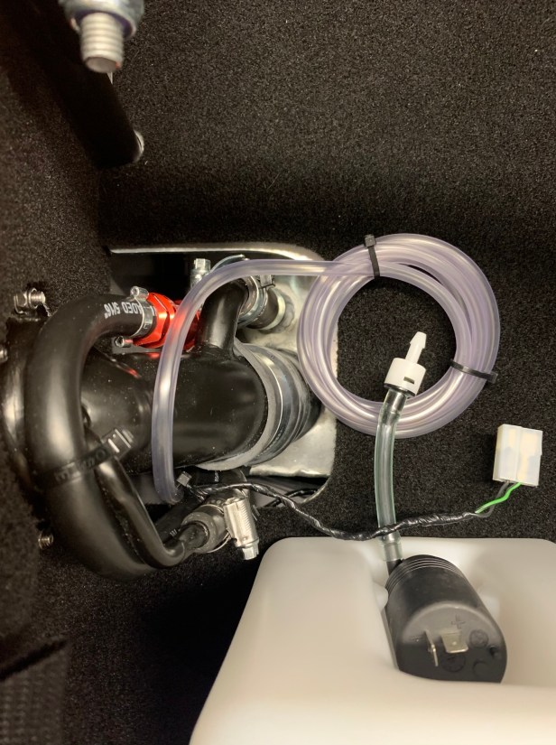 You can also see from the photos that I extended the hose between the washer bottle pump and the one-way-valve, so I could hide the valve behind the fuel filler cover. I made sure the washer hose was tie-wrapped up to the highest point to try and prevent the washer bottle emptying due to a syphon/gravity when parked on a slope. I know I won’t solve all of the problems associated with this washer bottle mounting location, but this is better than nothing, and it’s better than my 360R, which had the washer bottle under the plenum in the engine bay.