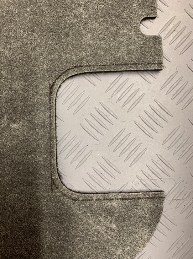 Having mounted the fuel filler cover to the boot floor (using two small self-tapping screws) the boot carpet needed to be trimmed around the fuel filler cover. I strongly recommend you make a paper template before you cut your boot carpet if you’re faced with the same situation.