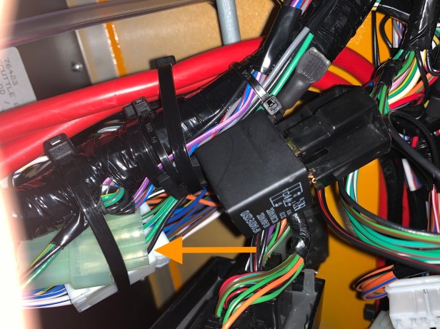Finding the black and white wire where it’s connected to the chassis loom into the gauge loom was not easy. I took random photos under the dashboard until I finally found what I was looking for. Disconnecting the connector and testing it with a multimeter proved a good connection.
