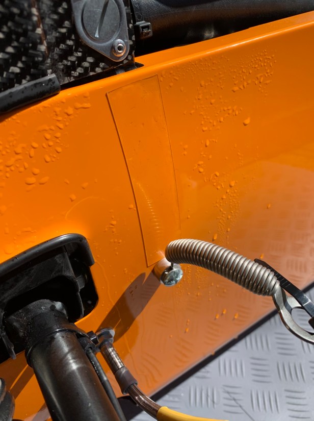 I didn’t apply paint protection to my 360R on the side screen bottom because it had arm rests fitted. Also, I haven’t needed to apply paint protection for the nose cone before; I am assuming this is because this is my first carbon fibre nose cone.