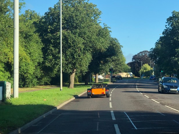 At this time of the morning it is possible to attempt the first of the tasks needed during the drive to the centre, and that is to use the brakes as much as possible. The IVA brake-efficiency tests leave little in the way of margin for new brakes, so a bedding-in procedure needs to be performed during the drive. You have two options: perform a series of stops multiple times in a row, or do some left foot braking. I was mainly using the series of stops, building intensity as I went. Certainly you could smell the brakes.