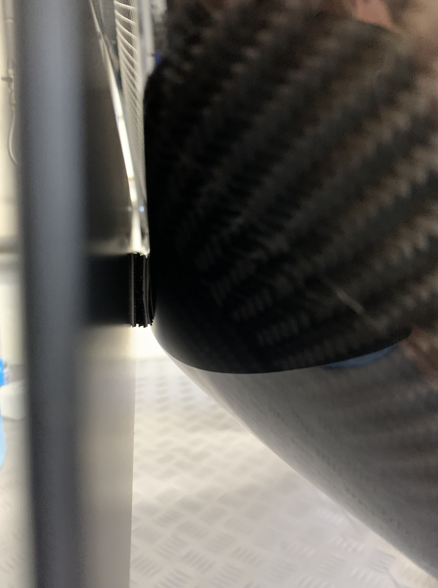 To secure the front number plate, I used 3M Dual Lock. The idea is to protect the nosecone in the event of anything touching the front number plate. If you decide to use this method, there is one important thing to consider: the vertical mounting position. The vertical mounting position must be near the middle of the number plate. If the vertical mounting position is too high (near the top of the number plate) air pushing on the bottom of the plate leavers it off the nosecone.
