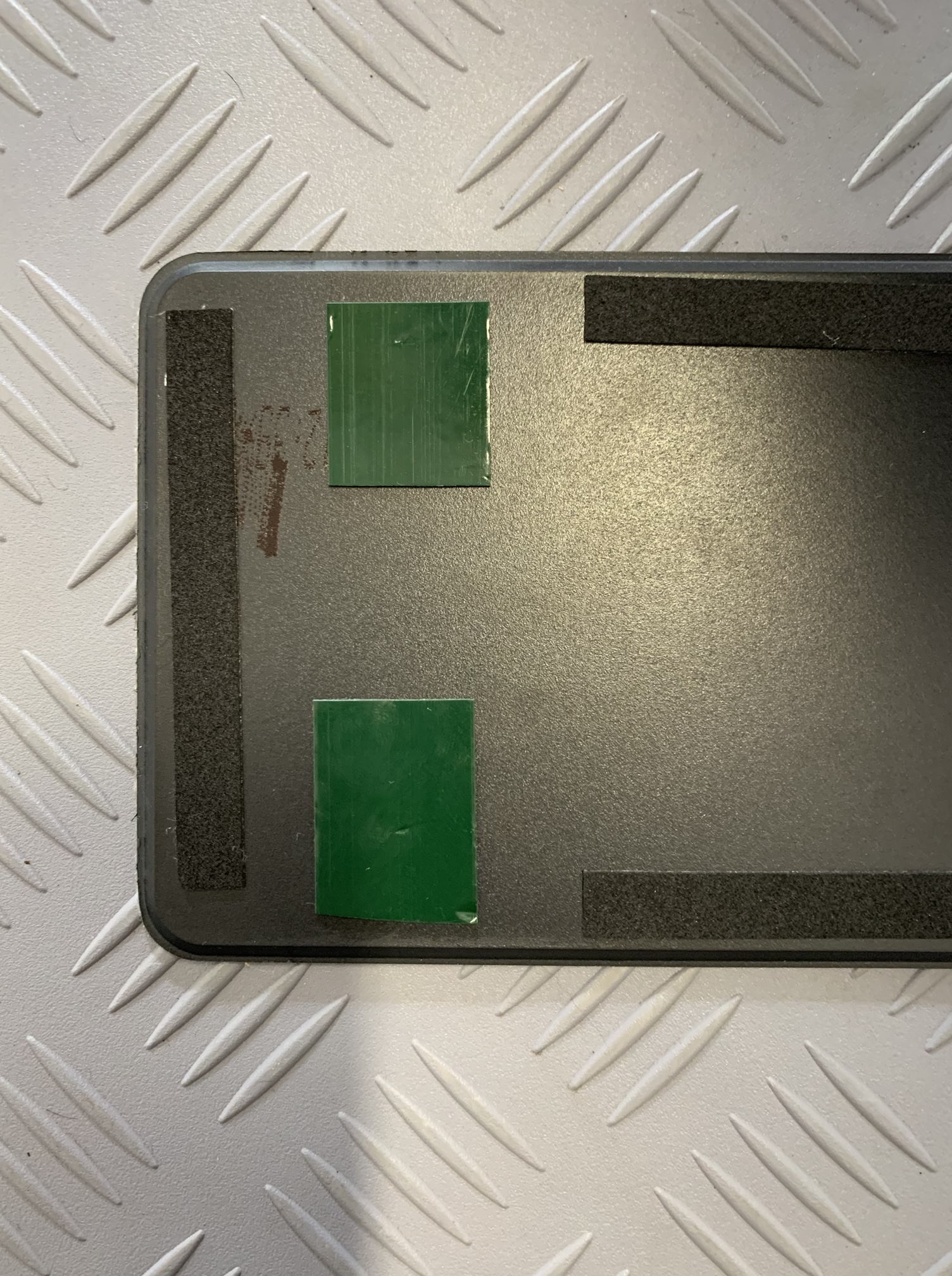 The rear number plate I stuck to the back panel using a combination of double sided tape, and very thin self adhesive foam. To help me decide how much double sided tape to use, I tried to remember how difficult removing rear number plates can be, without causing damage to the back panel – so as little as possible is my advice.
