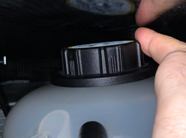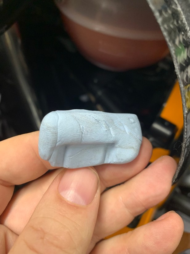 Measuring the gap between the nose cone and the expansion tank cap isn’t easy, and maybe not having a good technique lead to my initial problems. This time I wanted to prove I had increased the gap, instead of just a estimating. My solution was blue tack, but any clean putty type stuff would do. I pressed it into the gap, removed it and measured the difference. I have increased the gap from less than 5mm to a little over 10mm.